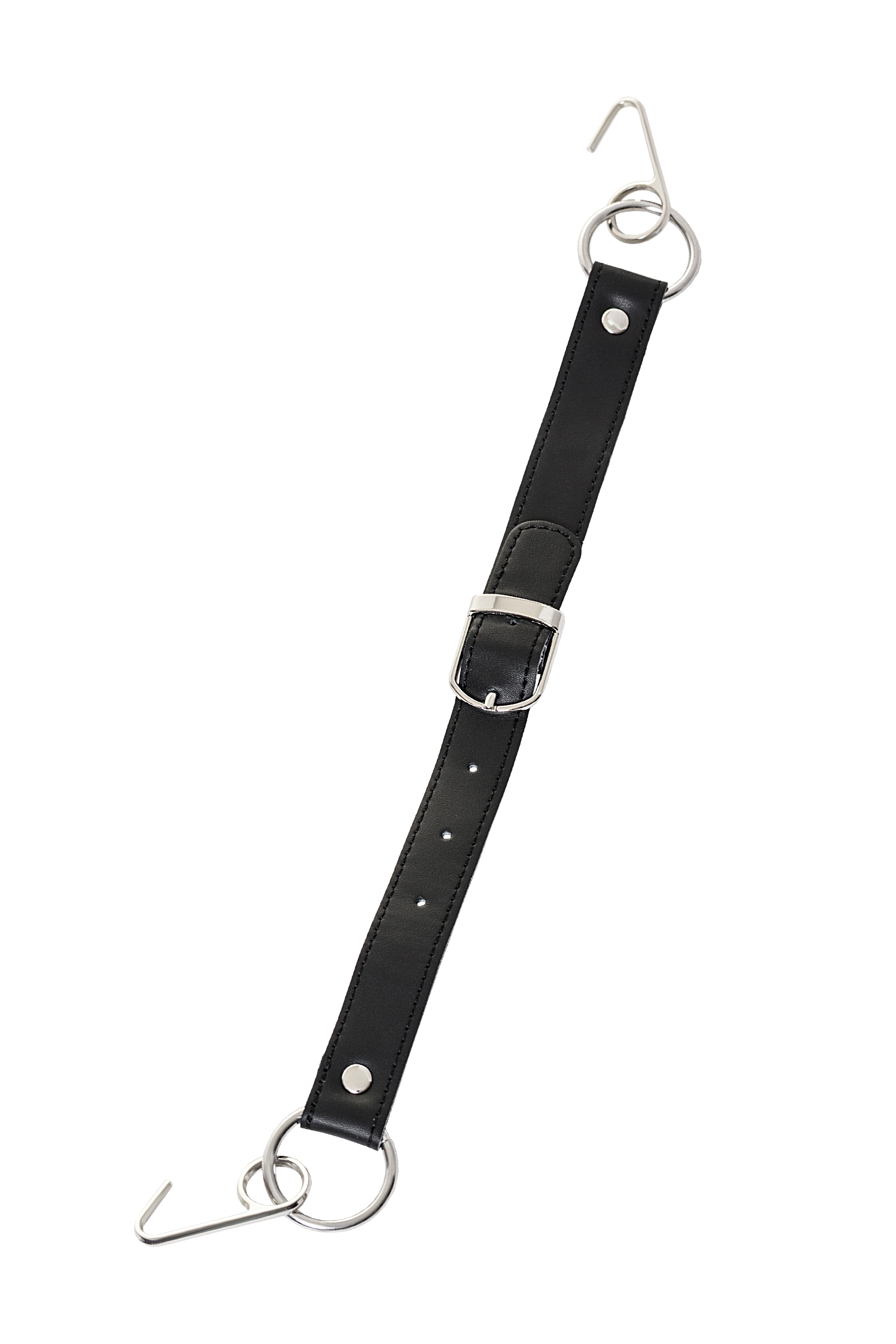 Кляп-крючок из коллекции аксессуаров Theatre выполнен из прочного металла. Два крюка будут фиксировать рот в состоянии улыбки, они соединены между собой кожаным ремешком, который можно отрегулировать по размеру.