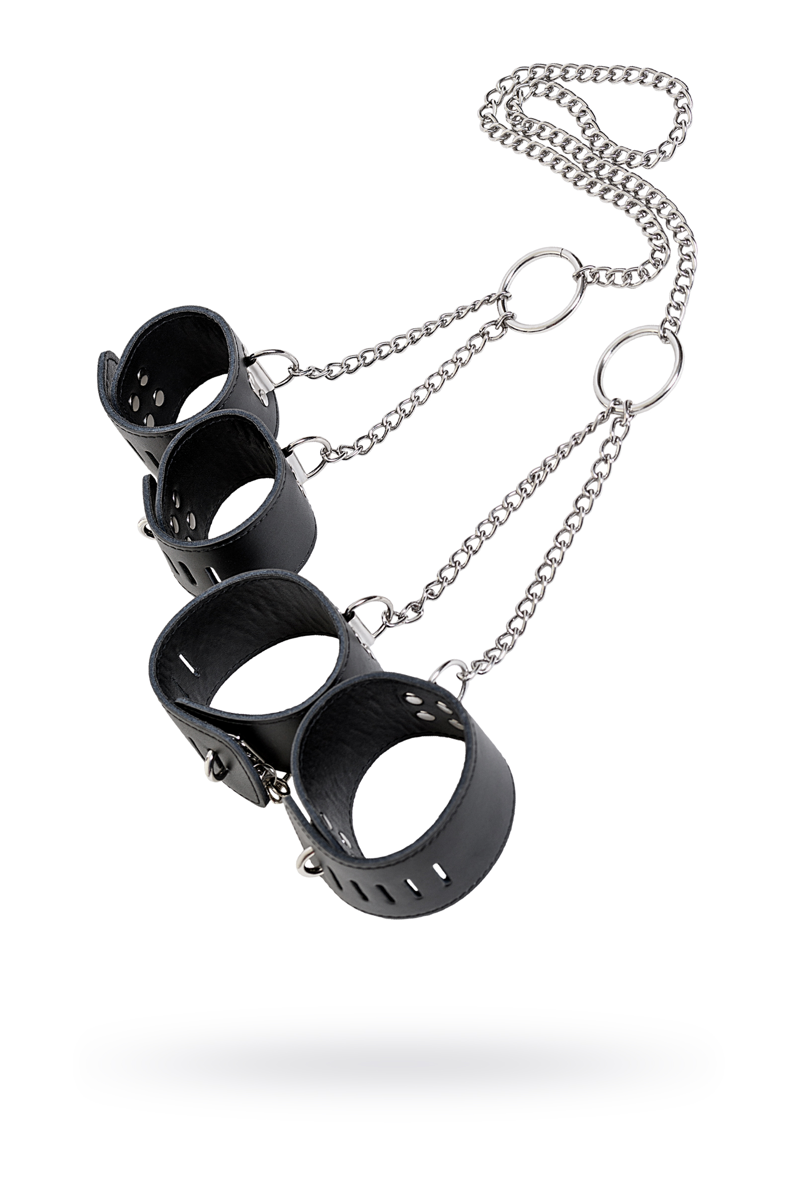 Комплект для бондажа из коллекции Theatre от TOYFA кожаный бандажный набор: наручники и оковы на ноги, соединенные металлической цепочкой. Расстояние между наручниками и оковами по 25см, цепочка между руками и ногами 70 см. Наручники и оковы фиксируются замками.