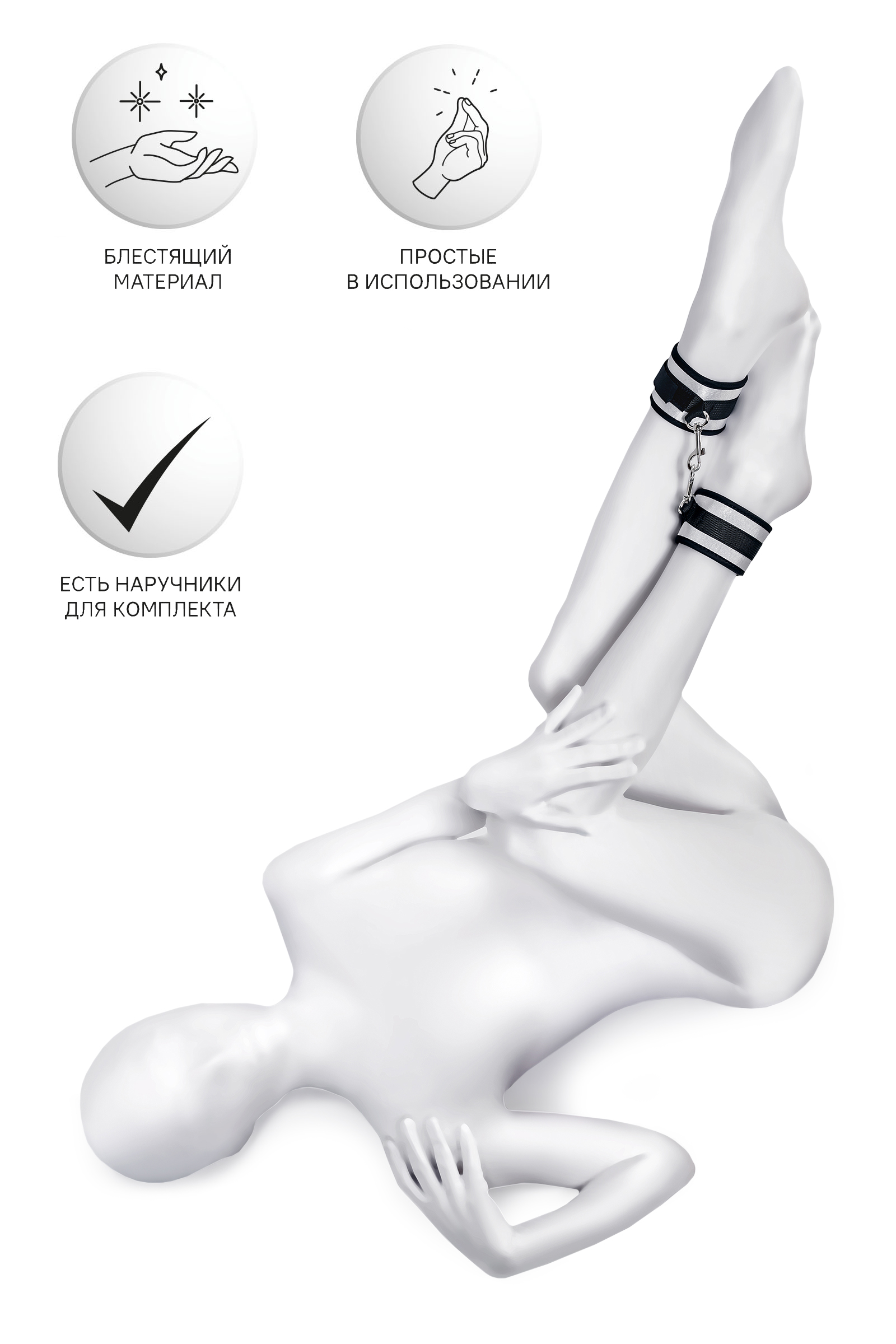 Оковы Ано́нимо — классический предмет для игры в подчинение, обязательный для начинающих и опытных поклонников БДСМ. Блестящий во всех смыслах аксессуар для ограничения свободы – сатиновый материал поблескивает, когда на него падает свет. Необычное сочетание серебристого и черного, совсем нехарактерное для классического исполнения аксессуаров в стиле БДСМ, придает изюминку и новизну. Подчиненный с таким аксессуаром выглядит неотразимым. Застежка велкро позволяет зафиксировать ноги любого размера. Между собой поножи скрепляются карабинами, практически не оставляя свободы действий. Никакого послабления, только полное подчинение своему Доминанту. Используйте дополнительно цепочку для расширенных возможностей фиксации положения ног. Начните игру в подчинение с этим аксессуаром, и вы поймете, как развивать свою чувственность с помощью ограничения свободы одного из партнеров. Дополните комплект аксессуарами — ошейником, кляпом, наручниками и продемонстрируйте что значит грубое обращение и полный контроль над свободой. Материал: полиэстер, полипропилен Цвет: черно-серебристый Длина: 28,5 см Ширина: 5,5 см Длина сцепки: 8 см