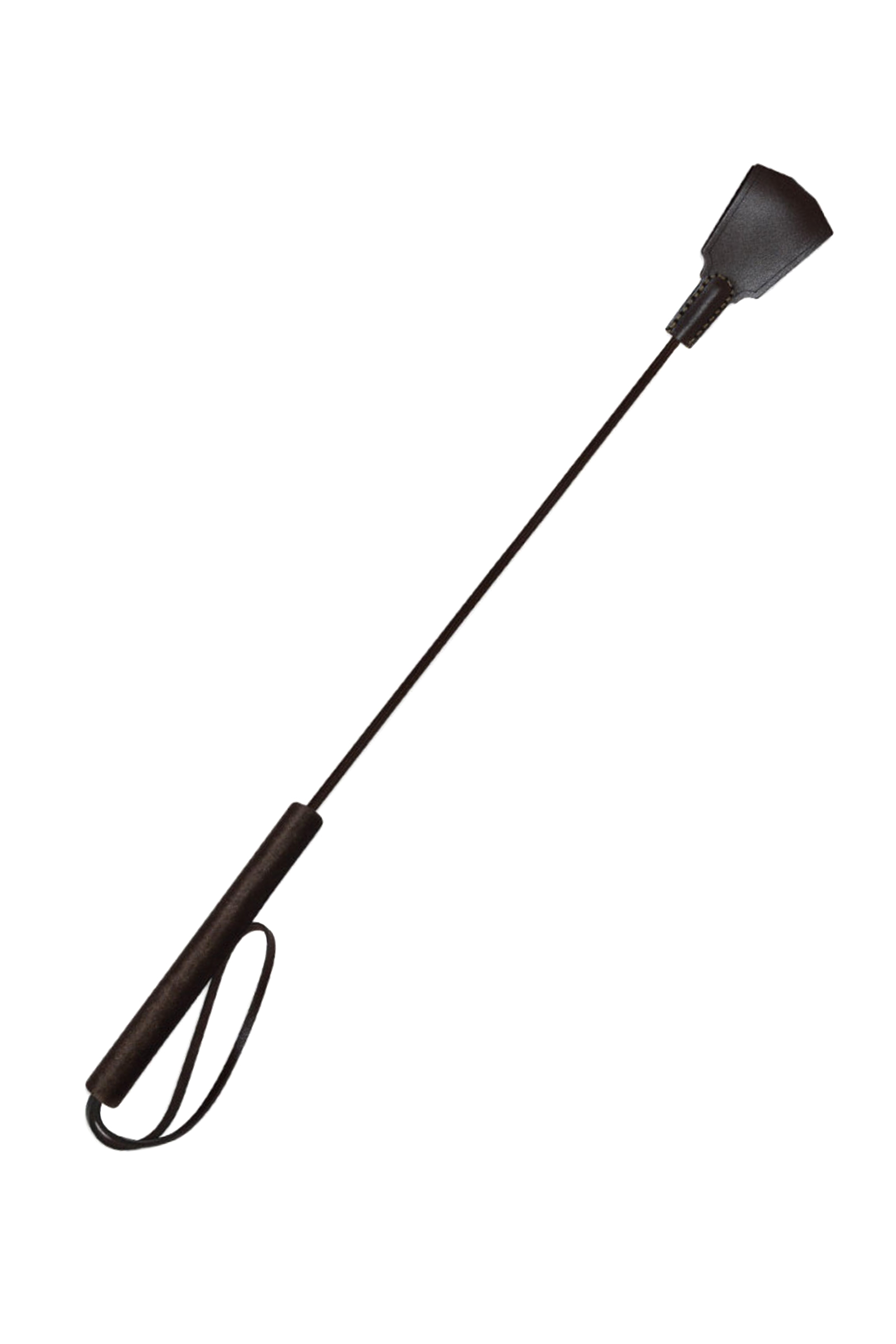 Стек из серии Готика представлен в виде роскошного, изящного изделия цвета темного шоколада. Петлеобразная хлопушка стека изготовлена из натуральной кожи высокого качества, располагается на конце гибкого, но прочного хлыста. Комфортное использование девайса обеспечивает бархатистая рукоять, покрытая велюровой тканью. Ремешок-петля, находящийся на рукояти, позволяет дополнительно фиксировать стек на запястье.