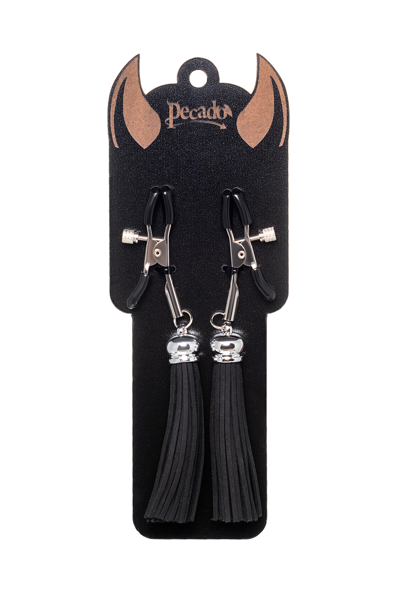 Хотите усилить ощущения от страстных игр с партнером? Увеличить степень возбуждения до невозможного можно с помощью зажимов-прищепок ручной работы от Рecado. Невероятно сексуальный аксессуар пробудит фантазию и повысит чувственность эротических зон. Мягкие резиновые накладки оберегают соски от повреждений. Металлический винт регулирует степень сжатия зажимов: от нежно-приятного до сильно-грубого. На концах черные резиновые наконечники, для безопасного воздействия на нежные участки тела. Компактный размер удобно вмещается как в женскую, так и в мужскую руку. Кисточки из натуральной замши не только визуально украшают эротический атрибут, но и еще утяжеляют его. Для самых смелых и искушенных любителей доминировать и подчиняться. ● Ручная работа. ● Надежная высококачественная фурнитура. ● 100% натуральная замша. ● Общая длина зажимов 14 см, длина кисточки 8,5 см. ● Не требуют специального ухода.